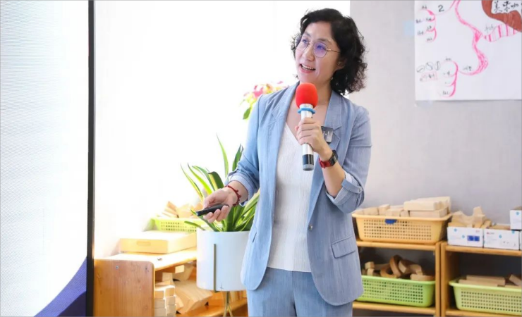 在沉浸式体验环节,嘉美娜老师引导大家一起沉浸感受孩子们的内心世界,用孩子的视角去体验教育活动,完成积木拼搭和手工制作,让老师们从中感受到如何更好地指导孩子进行活动。